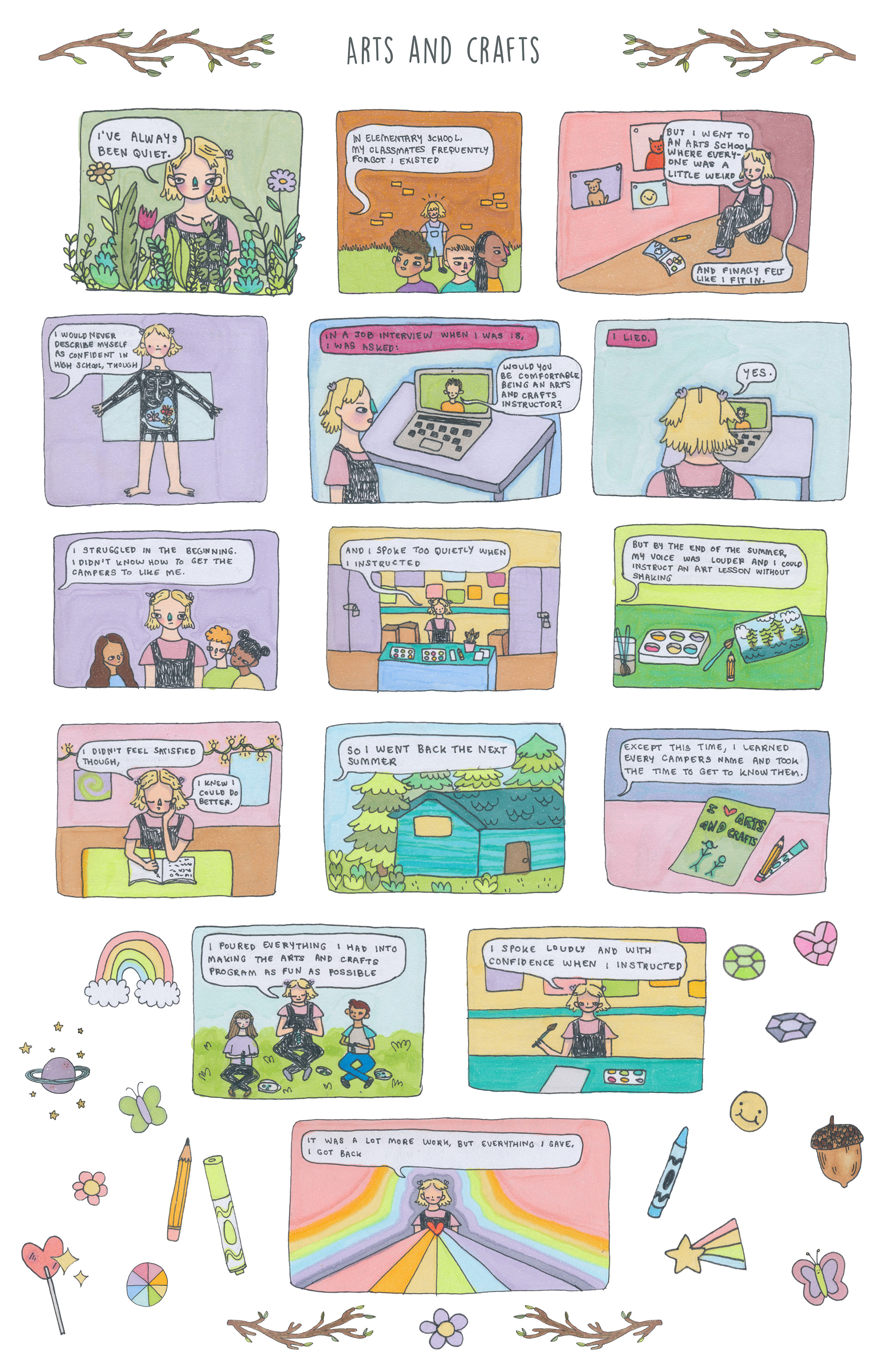 A comic I wrote about my experience working as an arts and crafts instructor at an overnight summer camp.