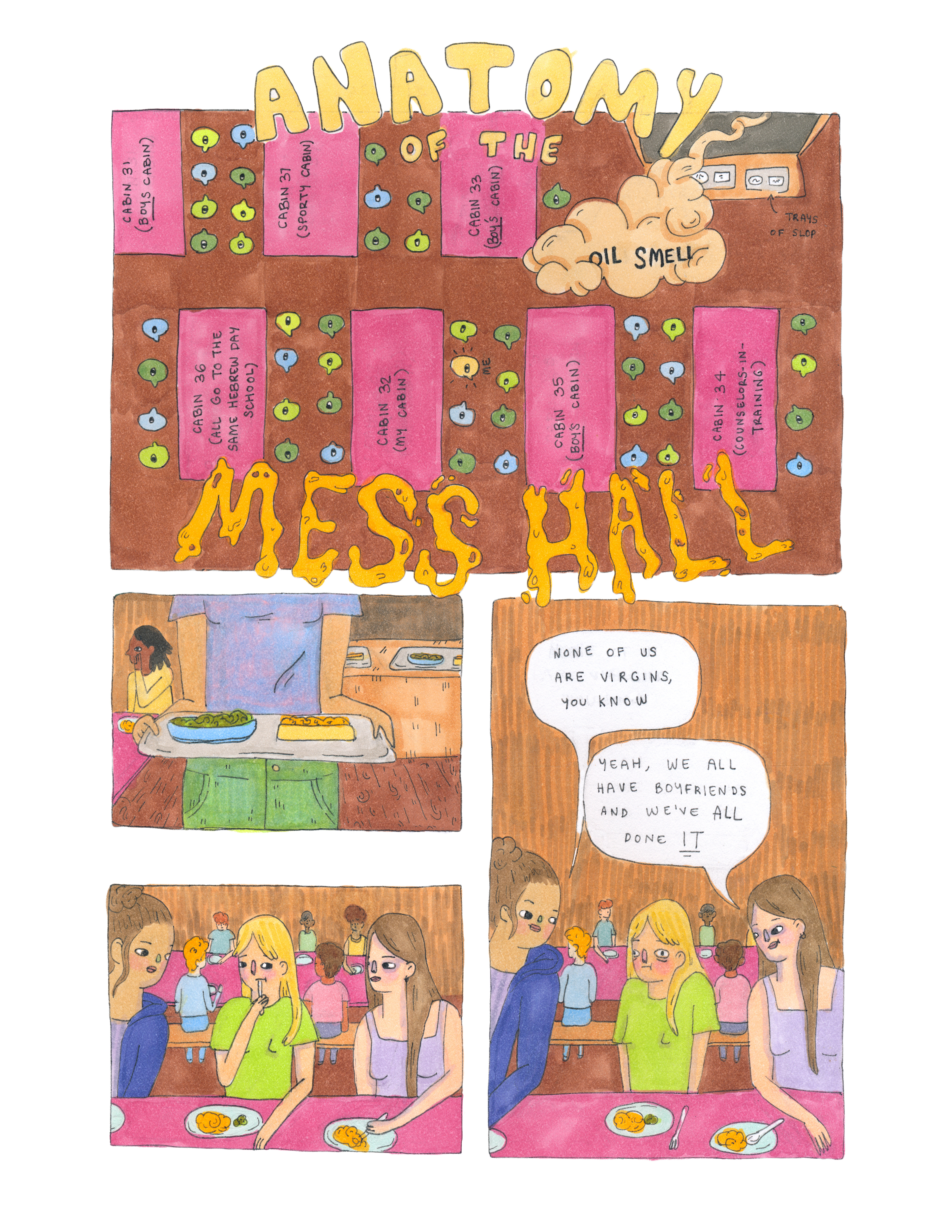 Camp Confessions is an ongoing project following the story of an anxious pre-teen at a Jewish sleepaway camp. This semi-autobiographical narrative explores the pubescent search for belonging through romantic mishaps, awkward moments, and a lot of mosquito bites.