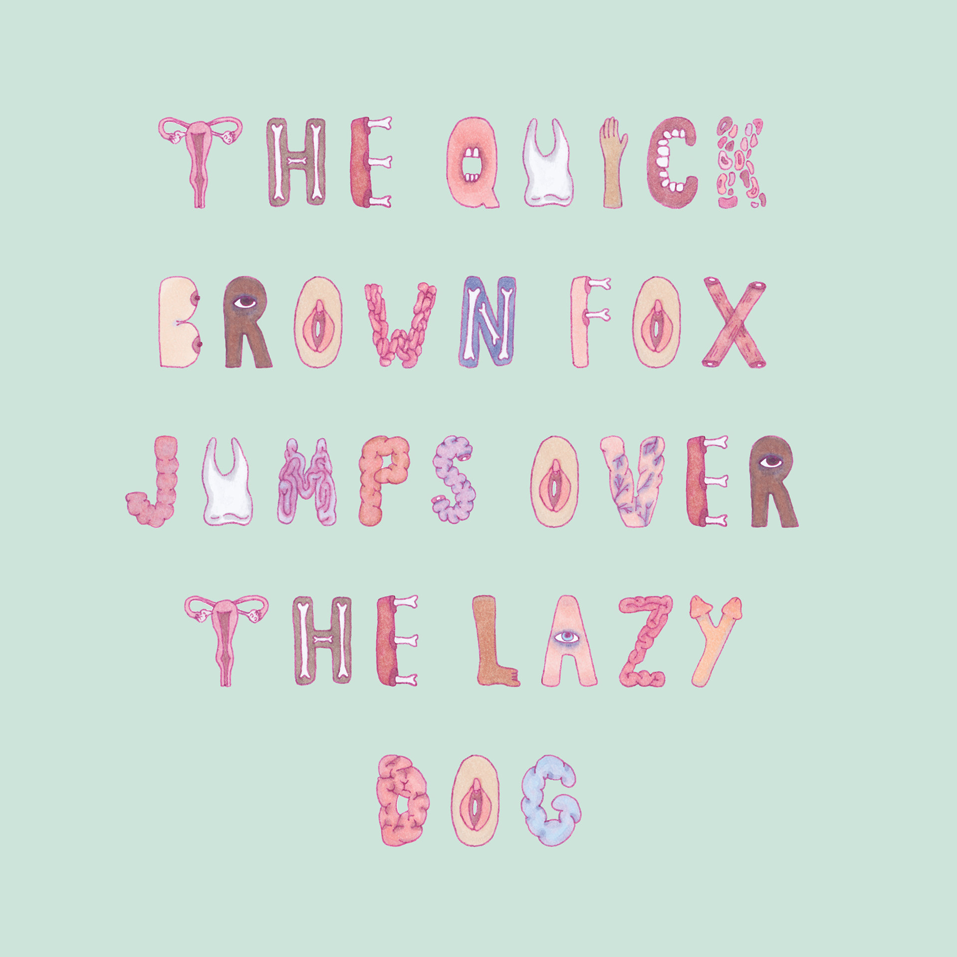 This is a hand-drawn font titled "Body Language" inspired by girlhood and the human body.