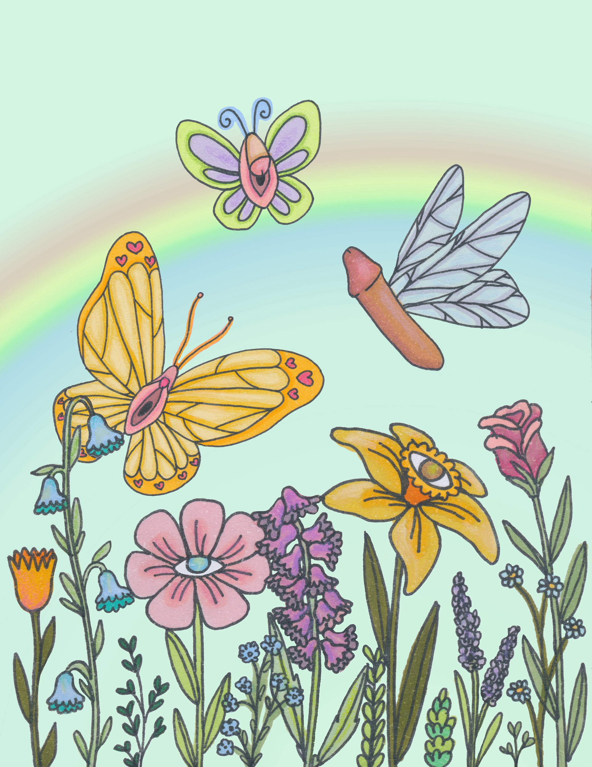 Illustration for the back cover of Hardwire Journal, which focuses on the study of human sexuality.