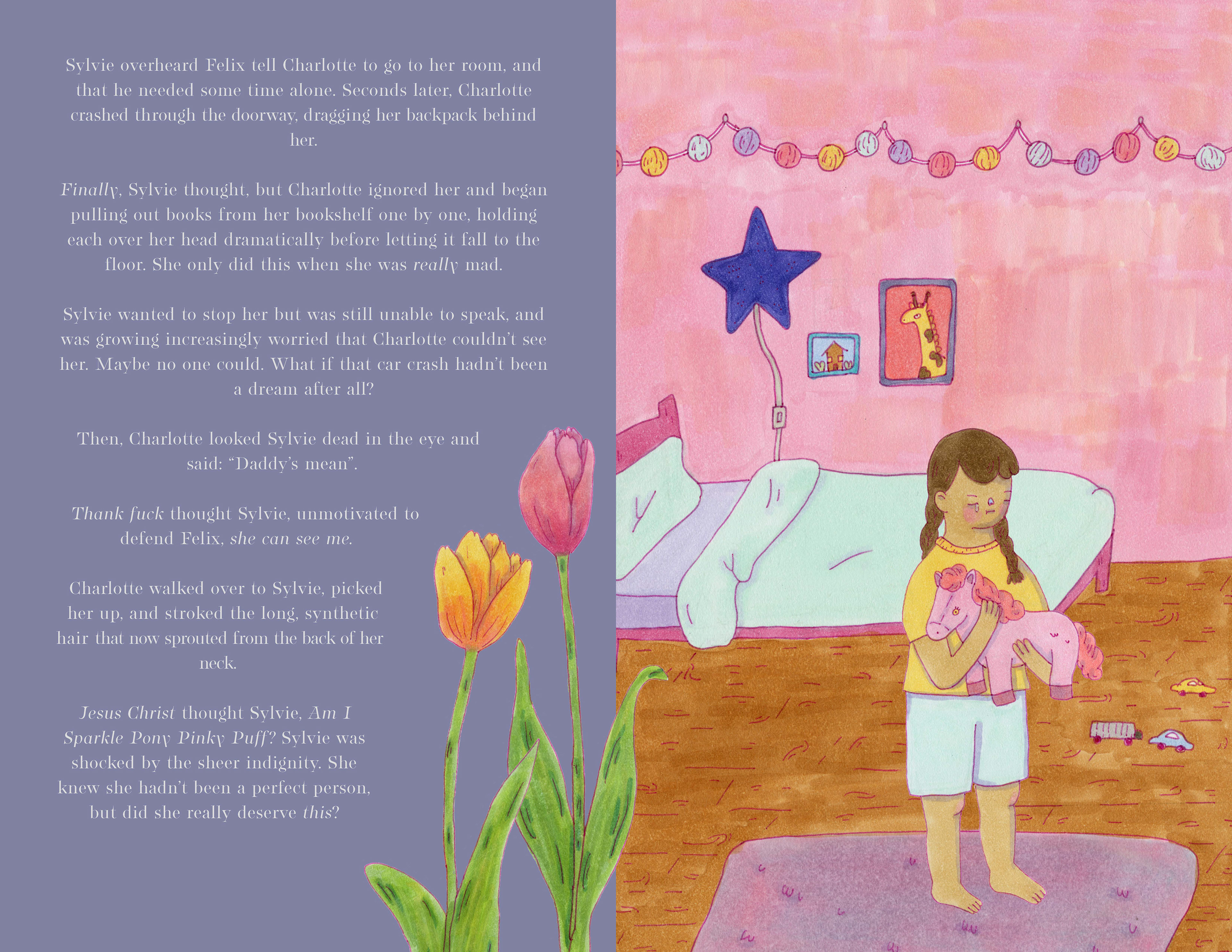 Selected pages from my original illustrated short story "Sparkle Pony Pinky Puff" (2024).